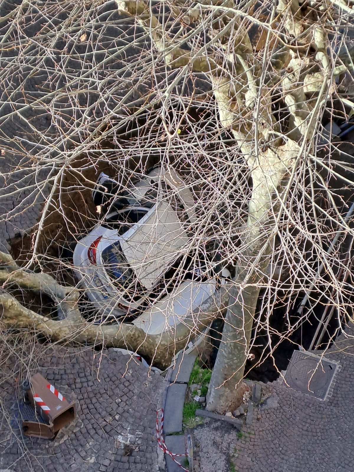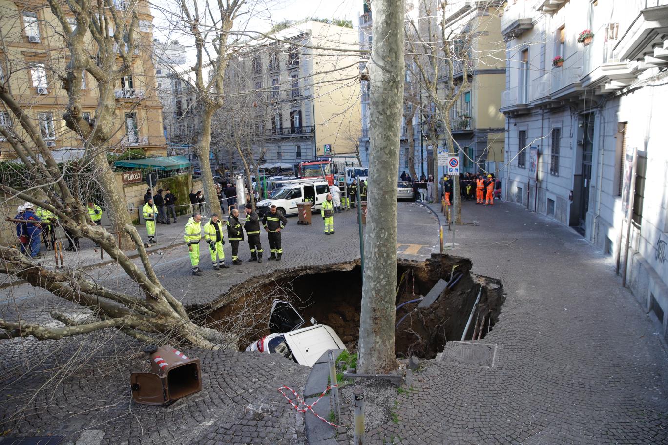 Alle cinque di questa mattina una grossa voragine si è aperta nel manto stradale di via Morghen, angolo via Bonito a Napoli. Il crollo ha inghiottito un albero e due vetture in transito; gli occupanti, tratti in salvo dai Vigili del Fuoco, non hanno riportato gravi conseguenze, ancora in corso il recupero delle auto. Dalle prime verifiche sembrerebbe collassata la fogna e risulta spezzata la condotta idrica di carico che è stata chiusa, nella zona di San Martino e da piazza Vanvitelli a salire è stata quindi interrotta la fornitura di acqua.