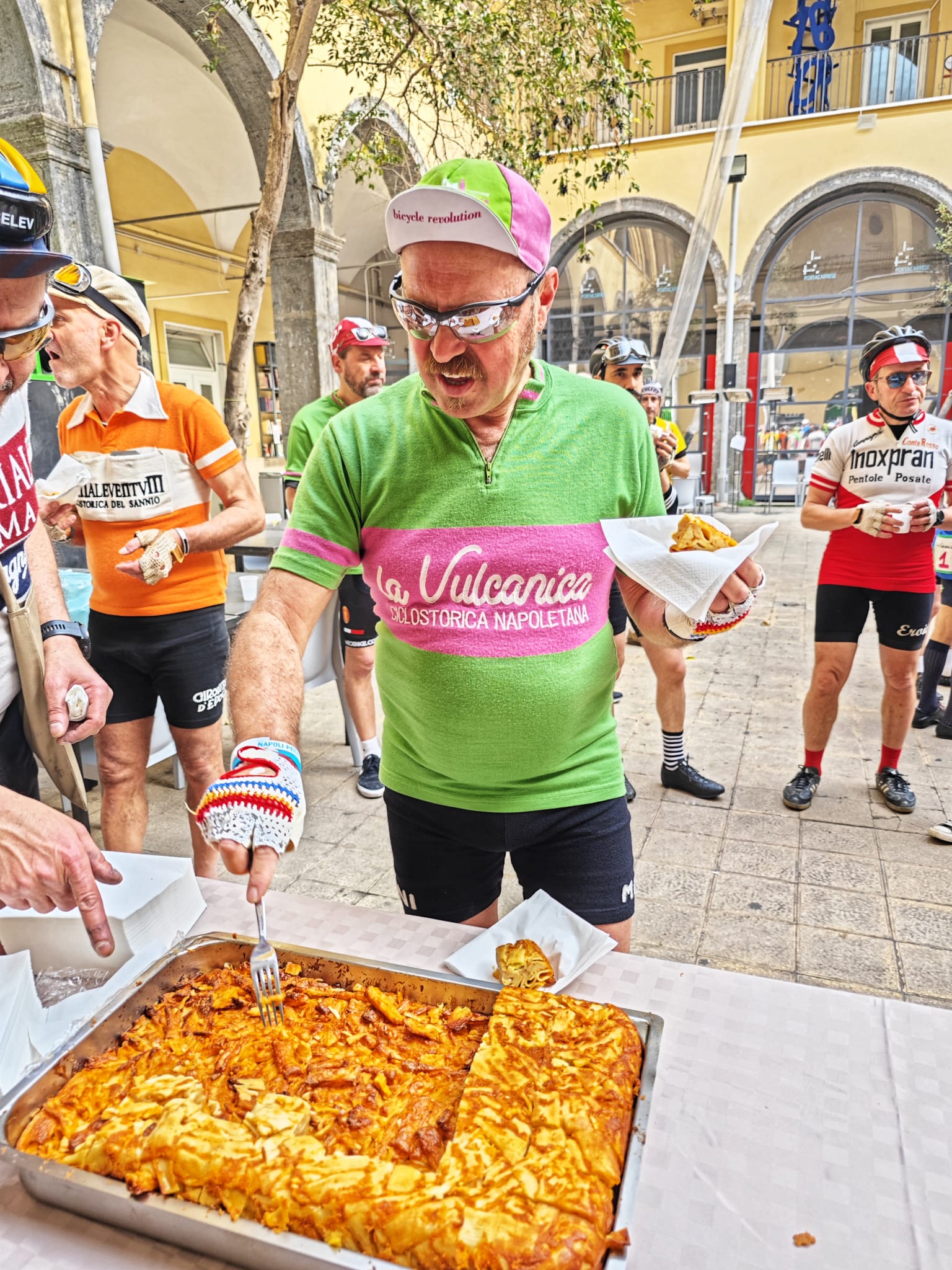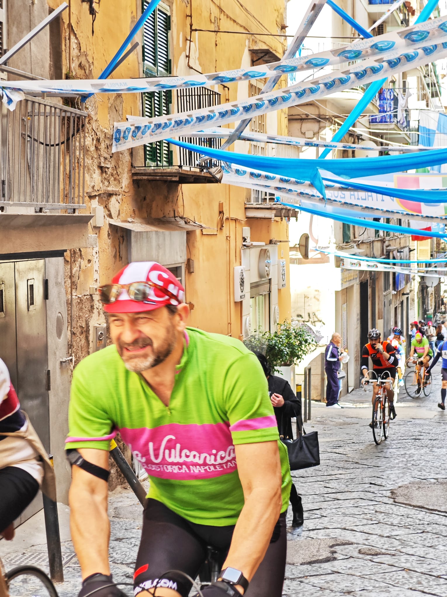Cento ciclisti impavidi, cento biciclette d’epoca, cento cuori per le strade di Napoli nello spirito del ciclismo di altri tempi. Si è tenuta ieri, domenica 23 aprile, la Vulcanica, pedalata sarà percorsa prevalentemente su strade con i sanpietrini.