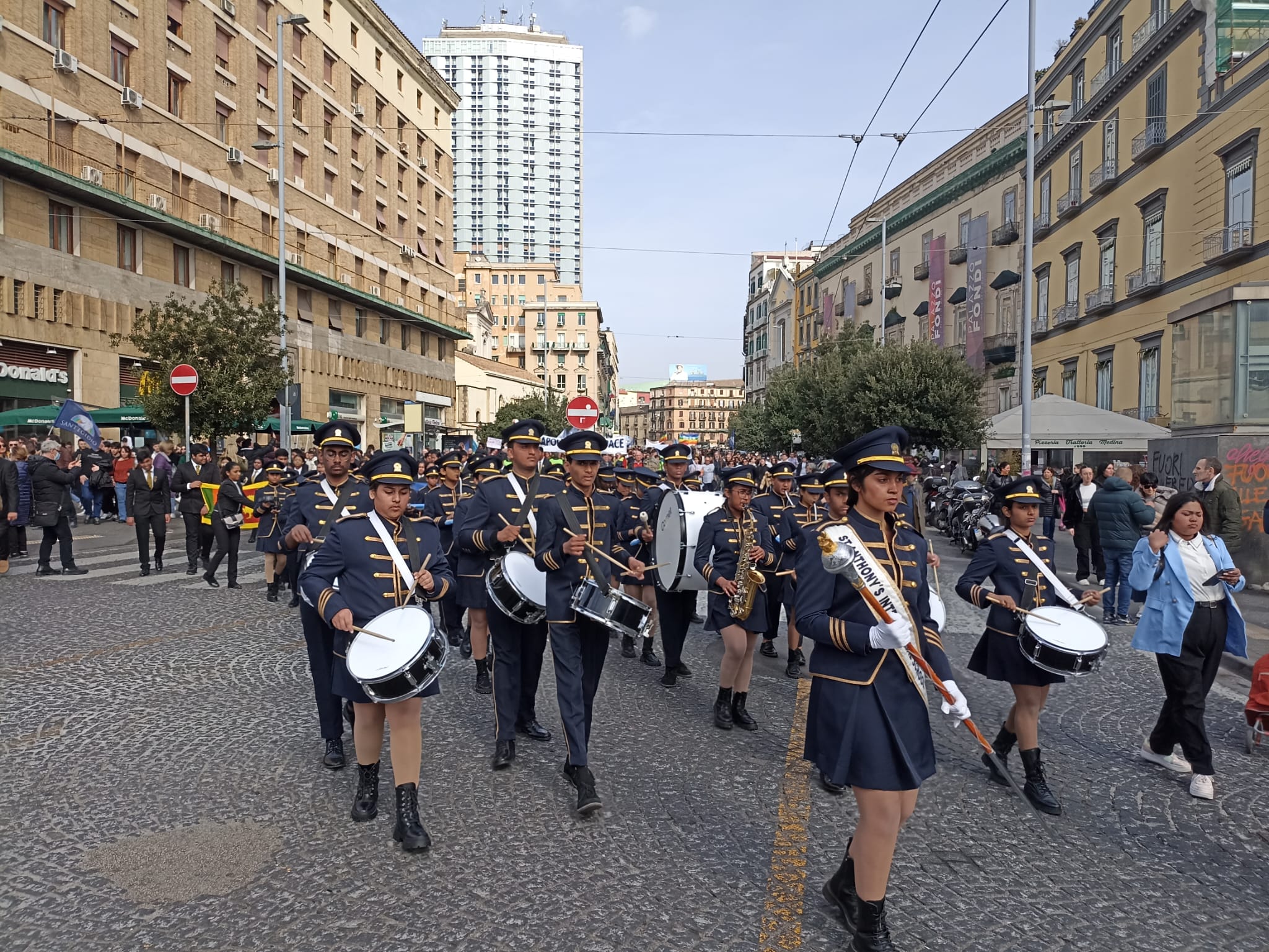 La marcia – La richiesta di stop alle ostilità in Ucraina e negli altri teatri bellici arriva non solo da piazza Dante dove si aprono gli interventi dal palco ma anche nel corteo che attraversando via Toledo e via Medina arriva sino in piazza Municipio dove i giovani, una musicale di ragazzi cingalesi, gli interventi di attori come Patrizio Rispo e scrittori come Maurizio De Giovanni animano la seconda parte della giornata. Tanta le bandiere gialle e blu dell’Ucraina sventolate dai cittadini del Paese ora in Italia, i cartelloni per veicolare parole di pace (“No war’’), la condanna dell’invasione del Cremlino. Ad aprire la marcia un grosso striscione con su scritto “Napoli città di pace’’ a cui si aggiungono le bandiere arcobaleno. «Più mandiamo armi, più le fabbrichiamo e più facciamo guerre. La nostra Costituzione, che è tra le più belle del mondo, dice che l’Italia ripudia la guerra», afferma padre Alex Zanotelli che alle parole del presidente della Federazione Russa Vladimir Putin contro i costumi e le tradizioni dell’Occidente, anche dal punto di vista dei rapporti privati risponde così: «Parte tutto dal suprematismo bianco-ortodosso, loro si sentono portatori dei valori tradizionali dicendo che l’Occidente fa schifo e basta. Ma anche noi rifiutiamo l’altro, il nero: è la stessa logica della Russia che ora però la sta difendendo con le armi. Le unità dei vertici della chiesa ortodossa è chiara (basti pensare al patriarca Kirill, molto vicino al Cremlino ndr.) ma anche noi l’abbiamo fatto. È un processo da cui venir fuori, l’umanità o diventa plurale o siamo destinati a sbranarsi vicendevolmente. Le chiese dovrebbero prendere in mano questo discorso». Marina Saviano, docente di sostegno dell’Istituto Isabella d’Este Caracciolo, ricorda «come già prima che scoppiasse effettivamente il conflitto i ragazzi vivevano la situazione internazionale con profonda angoscia ed ecco perché abbiamo cercato di coinvolgere soprattutto i ragazzi delle Prime e delle Seconde. Un anno fa i ragazzi erano terrorizzati che ci fosse una guerra in un posto vicino ma non troppo, ora purtroppo sembrano assuefatti ma è necessario ricordare loro che mentre noi continuiamo con la nostra routine c’è chi muore sotto le bombe». «C’è stato un contraddittorio sull’argomento, abbiamo insegnato loro a confrontarsi anche con dialoghi serrati – si inserisce Carmen Aiello insegnante di italiano e storia della Isabella d’Este – Non c’è stato un pensiero unico, potrebbero ragionare di più anche scegliendo bene le fonti per capire bene le ragioni politiche, storiche, geografiche. Prima della guerra pochi studenti sapevano chi fosse Putin, ora lo sanno e anche Zelensky, il presidente ucraino, non sapeva chi fosse. E in verità nemmeno molti altri». Manuela, 17 anni, è una studentessa del Liceo Statale Comenio dei Colli Aminei. Su quanto sta accadendo sente di dire che «anche se è passato un anno dall’invasione dell’Ucraina e ci sono altre guerre in piccole forme, non ci si può fare l’abitudine ma non ho un’idea precisa su quanto accaduto perché ci sono troppe questioni economiche e politiche aperte. Putin lo conoscevamo anche noi poco, ora di più e credo sia egoista e siamo impaurite che il conflitto possa allargarsi». Irma, studentessa di 18 anni del Fonseca invece già conosceva il nuovo Zar del Cremlino: «Sapevamo già prima della guerra che fosse un dittatore ma ci siamo comunque stupiti dell’invasione dell’Ucraina, non ce l’aspettavamo». In ogni caso, aggiunge la sua amica di scuole Alessandra, «la colpa di questa situazione non è soltanto sua. Gli Stati Uniti da questa situazione credo ne stiano dando vantaggio e anche la Nato che fa finta di difendere ha interessi politici ed economici, stessa cosa l’Unione Europea. Non c’è al giorno d’oggi un leader internazionale capace di fare gli interessi di tutti, anche la visita a Kiev di Joe Biden è stata una messinscena. Ma odio anche il comportamento di Zelensky, che si fa i selfie e le foto nel suo salottino mentre il suo popolo muore ed è entrato anche in Italia parlando a Sanremo». Alessandra è comunque pronta a dire, immedesimandosi nel popolo ucraino, come sia «facile fare la guerra a chi è più debole senza potersi difendere». Irma chiosa con una frase che può mettere i brividi per una sorta di rassegnazione. «Più che paura c’è consapevolezza che il conflitto possa estendersi, è brutto vivere a 18 anni sapendo quanto possa accadere in futuro a causa della guerra, del cambiamento climatico per decisioni di potenti che non fanno mai l’interesse della gente».